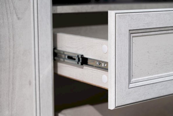 Благодаря современным технологиям дверцам и выдвижным ящикам не нужны доводчики – они легко и дружелюбно распахиваются и выдвигаются навстречу  по первому желанию хозяев. Шариковые направляющие обеспечивают очень плавный ход. Дверцы и ящики снабжены металлическими ручками, которые учитывают анатомию ладони, поэтому ими очень удобно пользоваться.