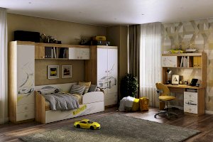 Стильный стол «Форсаж» – мечта каждого мальчика. Компактный стол прекрасно впишется даже в маленькое пространство детской комнаты. Удобная столешница подойдет как для письма, так и для занятий на компьютере или ноутбуке. Открытые полки и закрытые ниши надстройки стола хорошо подходят для хранения учебников  и школьных принадлежностей. В 3-х выдвижных ящиков поместится все, что необходимо для учебы и творчества. Эффектный принтерный рисунок на фасадах выдержан в общем стилистическом решении. Рисунок устойчив к истиранию и ультрафиолету.
