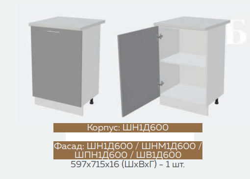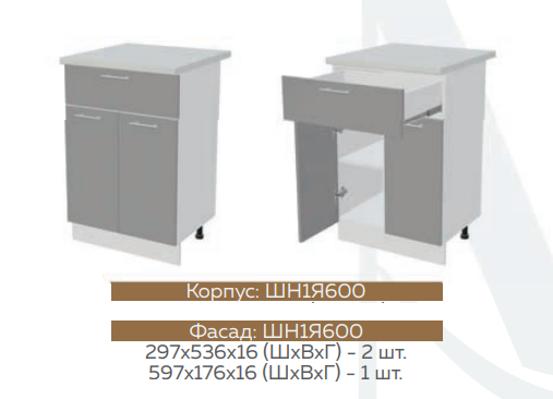 ШН1Д1Я600 Шкаф нижний с 1-м ящиком и 1-й дверью Белый снег софт/Графит софт