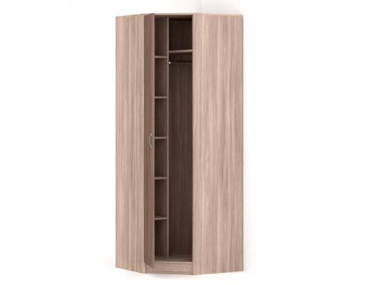 Шкаф распашной угловой 1 дверь со штангой и полками