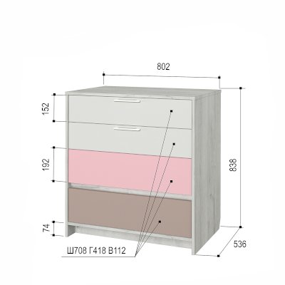 Внутреннее наполнение: шариковые направляющие (4 выдвижных ящика)
