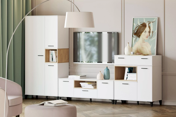 Продуманная конструкция и минимальные габариты делают тумбу ТВА Bergen функциональной и стильной. Простые геометрические формы, нейтральные цвета с ярко выраженными элементами в виде контрастных вставок цвета дерева и черных ручек подойдут для светлых и темных интерьеров.