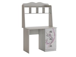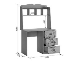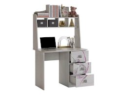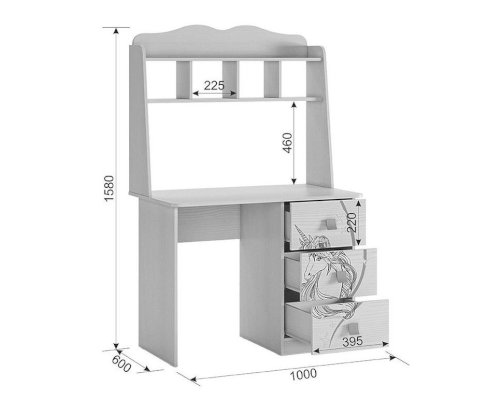 Стильный и модный стол детской «Фэнтези» - обрадует каждого ребенка. Компактный стол прекрасно впишется даже в маленькое пространство детской комнаты. Удобная столешница подойдет как для письма, так и для занятий на компьютере или ноутбуке. Открытые полки надстройки стола хорошо подходят для хранения учебников и школьных принадлежностей. В 3-х выдвижных ящиков поместится все, что необходимо для учебы и творчества. Необычный принтерный рисунок на фасадах выдержан в общем стилистическом решении. Рисунок устойчив к истиранию и ультрафиолету.