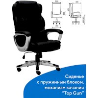 Надежный механизм качания "Top Gun" обеспечивает хорошую поддержку спины и поясницы за счет возможности свободного качания с фиксацией в одном рабочем положении и регулировку угла наклона под вес сидящего.