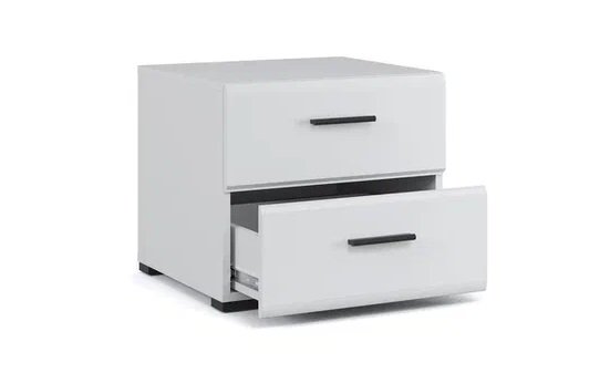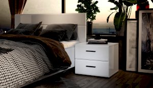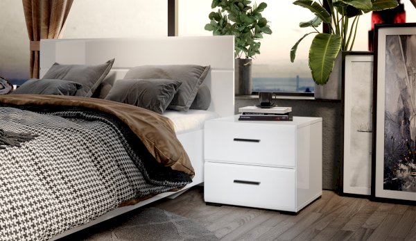 Прикроватная тумба органично впишется в интерьер современной спальни, сделает хранение вещей удобным и аккуратным. Глянцевые белые фасады High Gloss из МДФ с горизонтальной фрезеровкой делают пространство более объемным и воздушным. На поверхности тумбы можно расположить ночник, книгу, часы. Два вместительных выдвижных ящика на телескопических направляющих позволят хранить под рукой все самое необходимое – косметику, зарядное устройство, наушники. Тумба выполнена из экологически безопасных и надежных материалов.