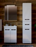 2 дверцы; 1 полка ЛДСП; ручка врезная металлическая хромированная, опоры квадратные регулируемые.