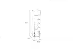 Выдвижные ящики с фасадами в модных, спокойных оттенках, характерных для скандинавского стиля и спокойного современного интерьера оснащены шариковыми направляющими. Шариковые направляющие полного выдвижения равномерно распределяют вес содержимого и обеспечивают плавный бесшумный ход ящика. Высокие регулируемые опоры зрительно облегчает конструкцию и делает процесс уборки удобным. Круглые ручки отлично подходят для данной модели.