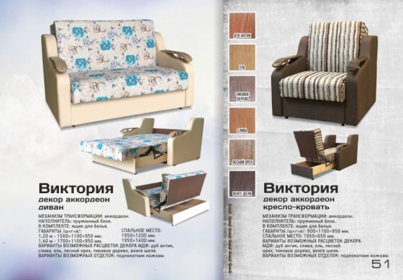 Диван аккордеон Виктория с декором (Асмана)