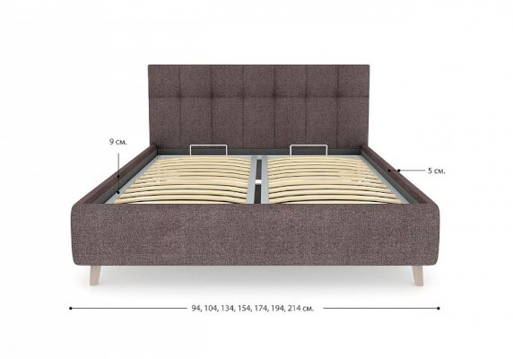 Двуспальная кровать с мягким изголовьем подойдет для современных интерьеров спален, а благодаря высоким ножкам впишется в стиль ретро, скандинавский или минимализм. В комплект двуспальной кровати с мягким изголовьем входит металлическое основание с деревянными ламелиями, а при желание кровать можно укомплектовать подъемным механизмом с бельевым ящиком.
