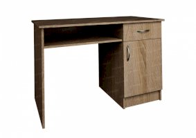 Стол письменный №2 идеально подходит для школьников, студентов, офисных служащих и работников умственного труда. Помимо рабочей поверхности модель оборудована вместительной тумбой, в которую входят скрытое за распашной дверцей отделение и один выдвижной ящик. Мебель надежна и долговечна. Она изготовлена из ламинированной ДСП, имитирующей оттенок и текстуру ясеня шимо светлого.