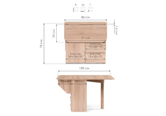 Длина разложенного столика, мм 1300