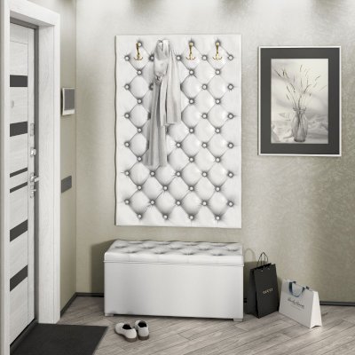 Пуф Мишель шириной с каретной стяжкой. Сиденье пуфа открывается. Под сиденьем большая и удобная ниша для хранения.