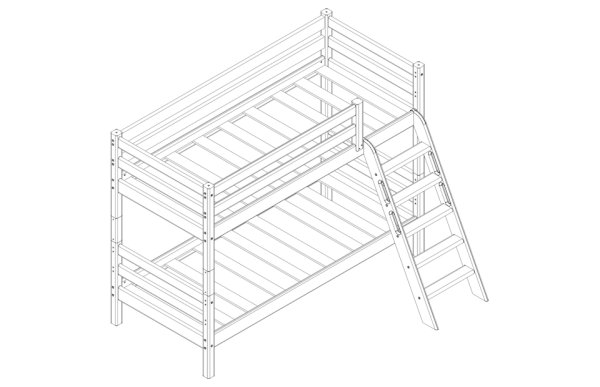 В состав варианта входит: Пакет № 1 базовый, кол-во 1 шт. Пакет № 2 латы, кол-во 1 шт. Пакет № 3 задняя защита от падения, кол-во 3 шт. Пакет № 4 передняя защита 1/4, кол-во 1 шт. Пакет № 12 опоры для низкой кровати, кол-во 1 шт. Пакет № 14 наклонная лестница для низкой кровати, кол-во 1 шт.