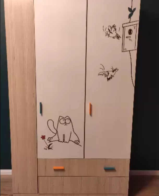 Шкаф вместительный, симпатичный, разные отсеки, ручки прорезинены, есть доводчики. Пришёл без сколов, комплектность