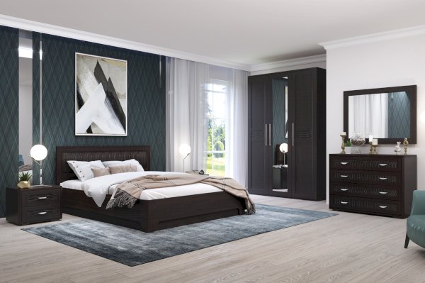 Вы можете купить комод в рамках коллекции мебели для спальни «Парма». Просим обратить внимание, что он отличается от другого элемента — комода высокого габаритами и конструкцией. Последний заметно выше и уже.