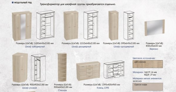 Модульная спальня Элана Дуб сонома (МБГ)
