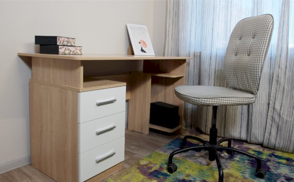 Стол письменный компьютерный – удобное рабочее место для студента, школьника, отличное решение для кабинета с интерьером в скандинавском стиле. На широкой столешнице легко поместится монитор, клавиатура и документы, а в ящиках поместятся все письменные принадлежности. Выделено место для системного блока. В столах системы Гарвард мягкие, удобные для опирающихся рук края, с кромкой в 2мм, а также, скруглённые углы столешницы. Корпус выполнен в теплом древесном цвете светлого дуба с приятной на ощупь фактурой, фасады - белые матовые. Нейтральные оттенки мебели позволяют легко вписаться уже в готовый интерьер.