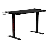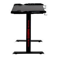 Поверхность стола не скользкая, устойчивая к загрязнениям, мелким царапинам. На столешнице можно расположить все необходимое: письменные принадлежности, документы, игровые девайсы, настольную лампу.  В конструкции предусмотрено 2 отверстия для проводов, а также подстаканник и крючок для наушников.
