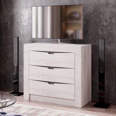 Элегантный комод «Леонардо» можно использовать как отдельно, так и в коллекции спального гарнитура. Удобная система хранения для одежды, пастельных принадлежностей или других хозяйственных аксессуаров состоит из трёх вместительных выдвижных ящиков на шариковых направляющих, которые обеспечивают легкую и бесшумную эксплуатацию модели.