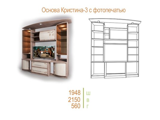 Гостиная «Кристина-3» подходит для различных типов интерьера благодаря разнообразию цветового оформления. Она позволяет оборудовать вашу квартиру с максимальным удобством и функциональностью. Сервант состоит из симметричных витрин, множества шкафов и полок, а также предусмотрена ниша для телевизора. Корпус выполнен из ЛДСП, фасады МДФ.