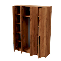 Четырехстворчатый шкаф имеет универсальный вариант для хранения: на боковых полках можно разместить нижнее белье, одежду, постельное белье, а на горизонтальной штанге развесить одежду на вешалках. Сочетание платяного и бельевого отсеков позволяет использовать шкаф в качестве комбинированного.