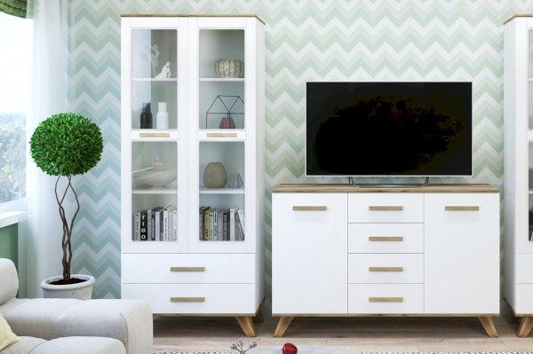 Если вы хотите оформить гостиную в популярном скандинавском стиле, вы можете купить витрину Вега Скандинавия. Витрина в гостиную - это вместительный распашной шкаф со стеклянными дверцами.