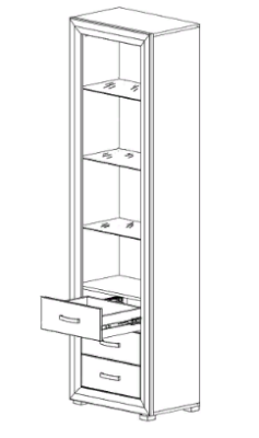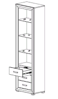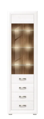Верхняя часть изделия оснащена стеклянными полками, скрывающимися за распашной застекленной дверью