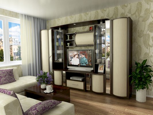 Гостиная «Кристина-3» подходит для различных типов интерьера благодаря разнообразию цветового оформления. Она позволяет оборудовать вашу квартиру с максимальным удобством и функциональностью. Сервант состоит из симметричных витрин, множества шкафов и полок, а также предусмотрена ниша для телевизора. Корпус выполнен из ЛДСП, фасады МДФ.